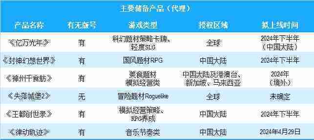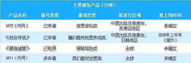 公司有多款储备产品,,,,涵盖放置类、、策略类、、RPG、、、、Roguelike等多元化游戏品类,,,储备的主要自研和代理产品如下::::
